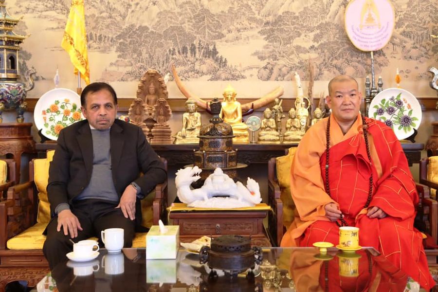 尽管中国对新冠肺炎疫情采取了相关限制措施,大使帕利塔·科霍纳博士和使馆官员也在灵光寺参加了线上活动。灵光寺是中国历史悠久的佛牙舍利保存地。