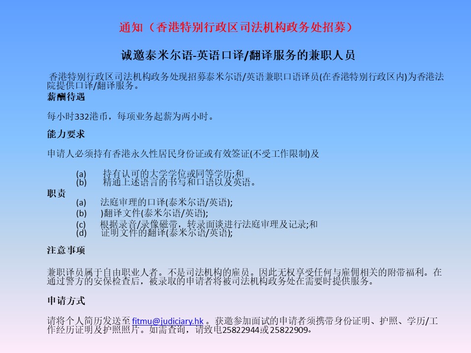 诚邀泰米尔语-英语口译/翻译服务的兼职人员