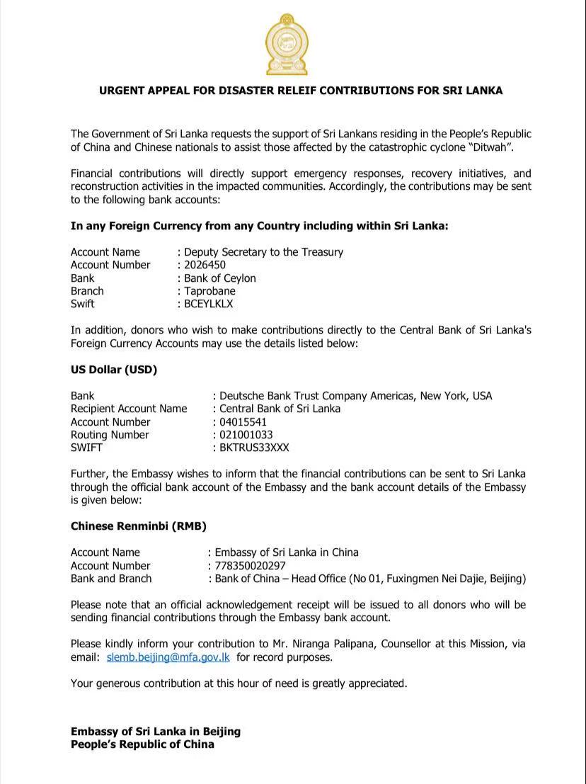 URGENT APPEAL FOR DISASTER RELEIF CONTRIBUTIONS FOR SRI LANKA